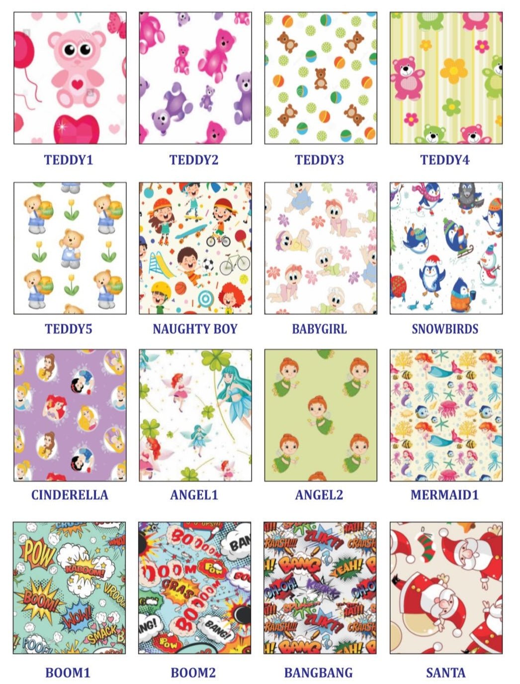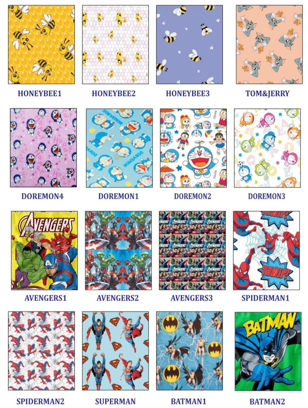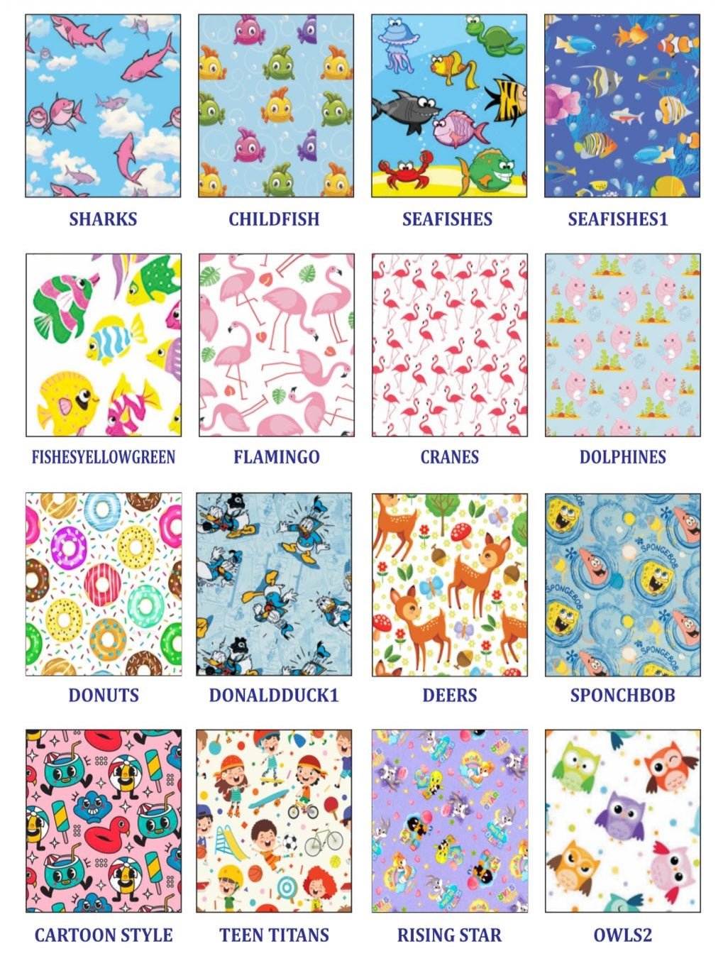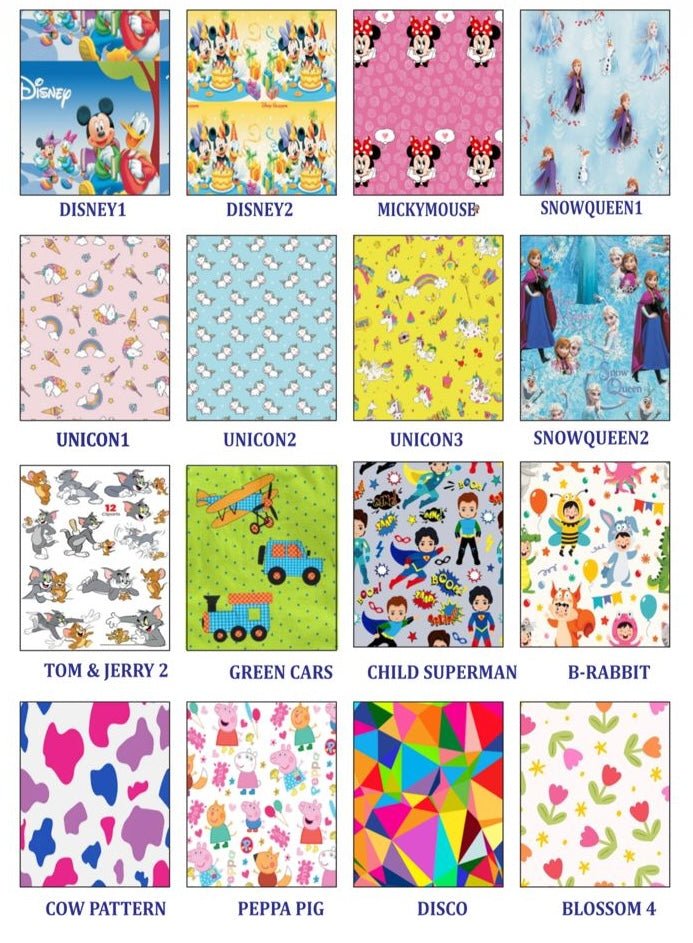 Fun paediatric prints (cartoons, superheroes, animals)