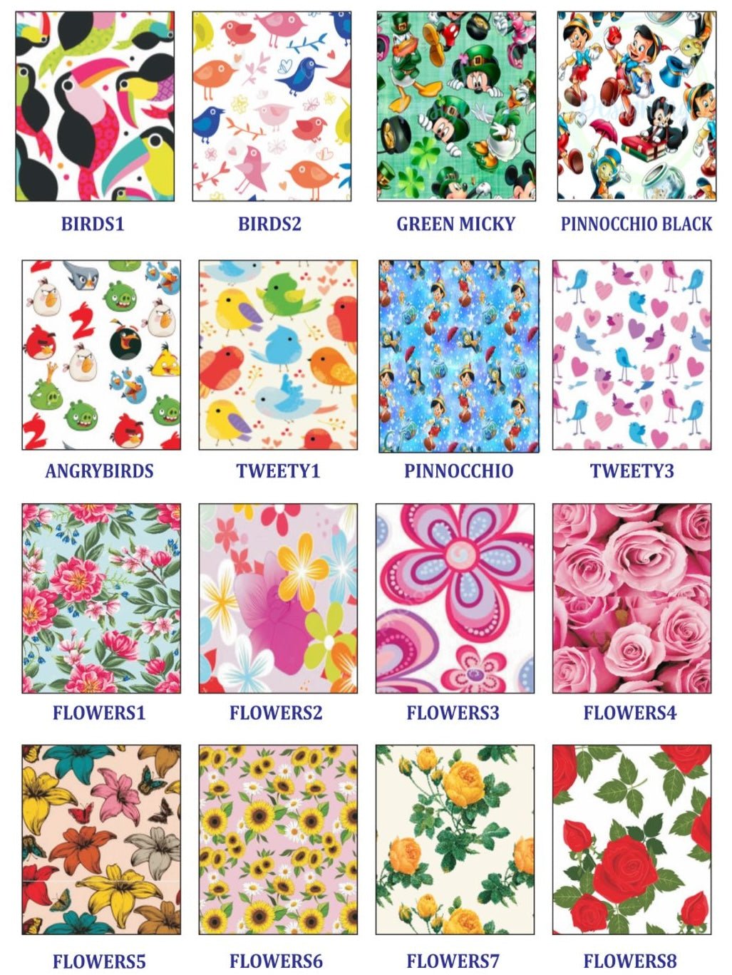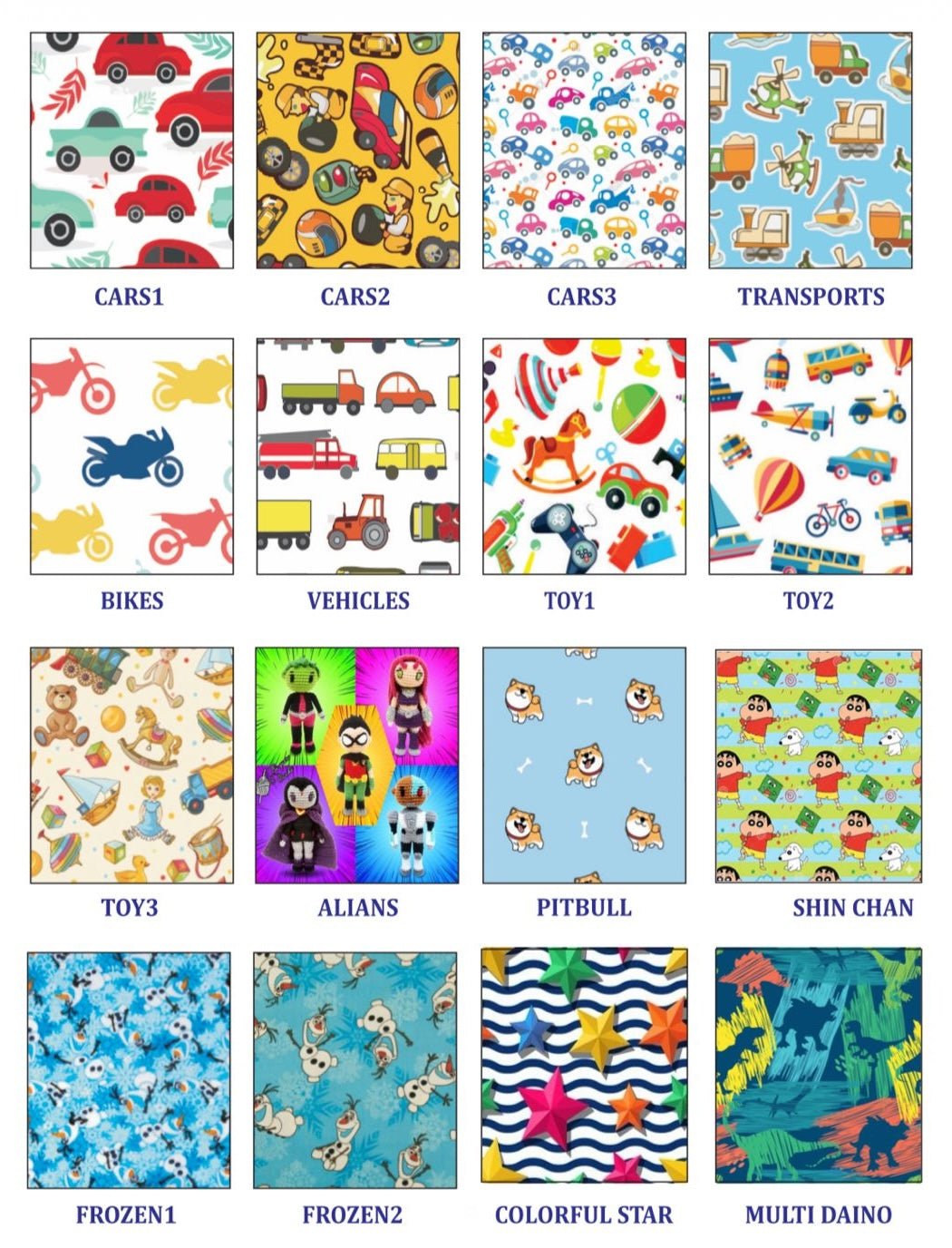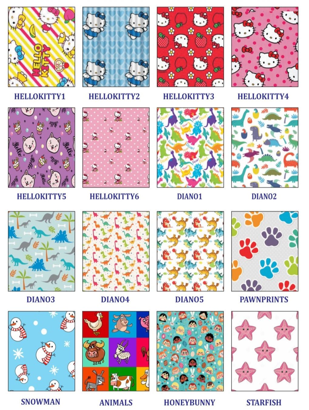 Fun paediatric prints (cartoons, superheroes, animals)