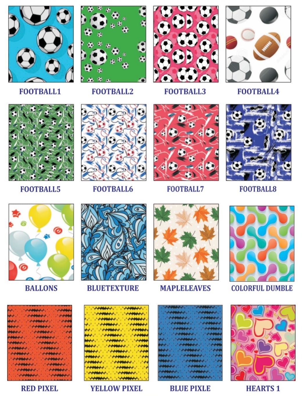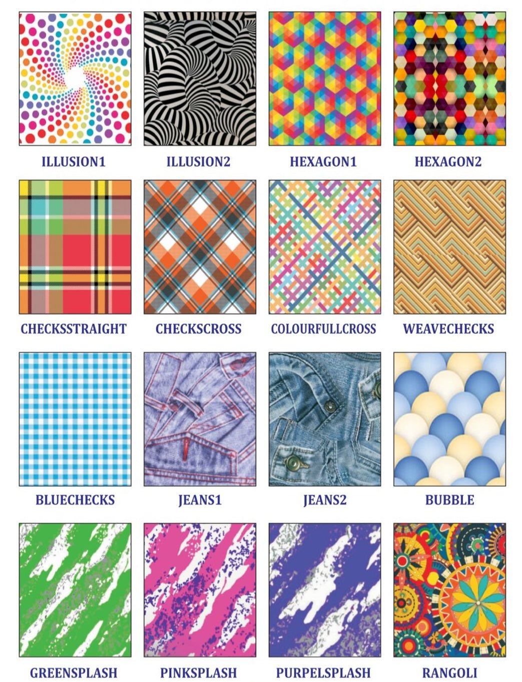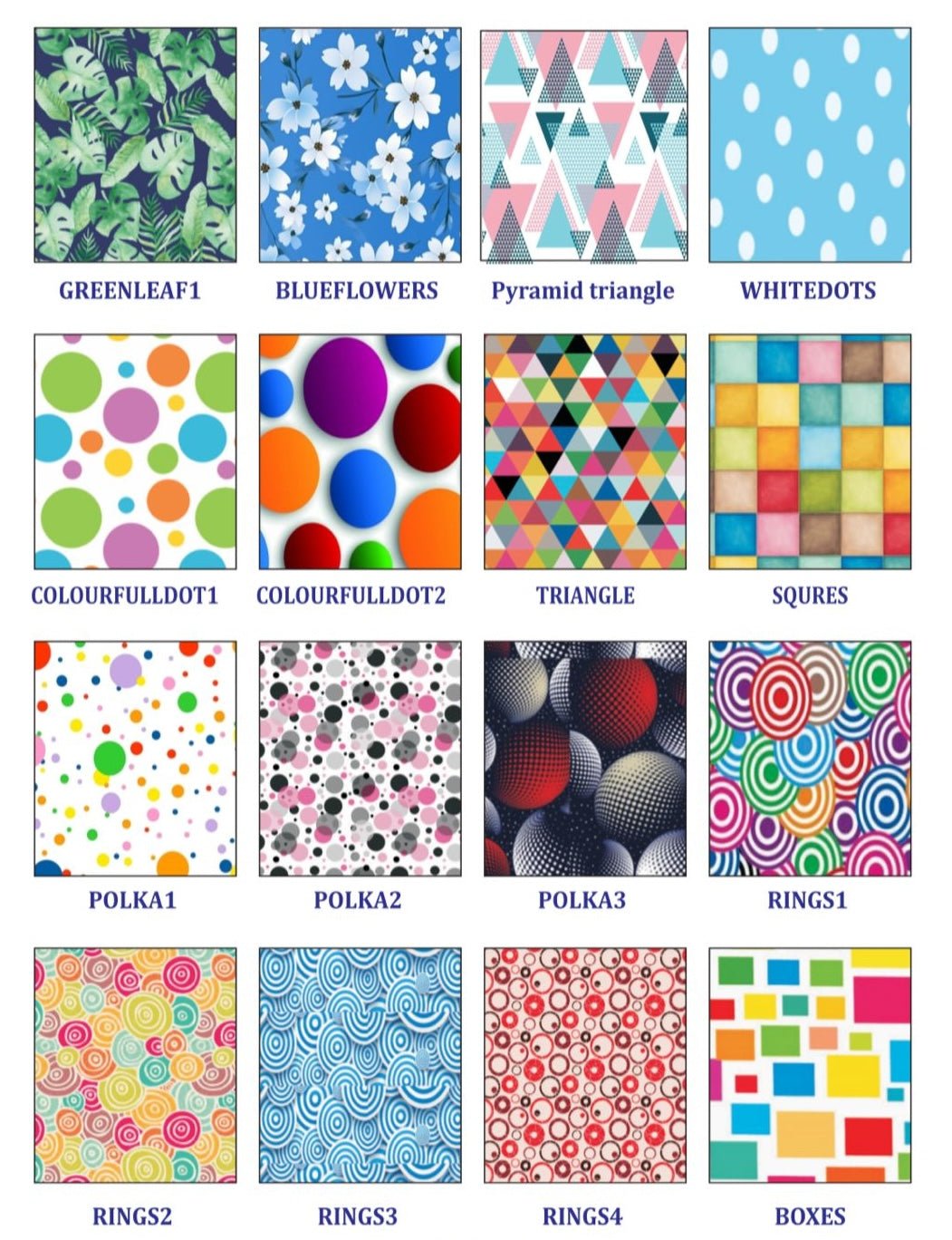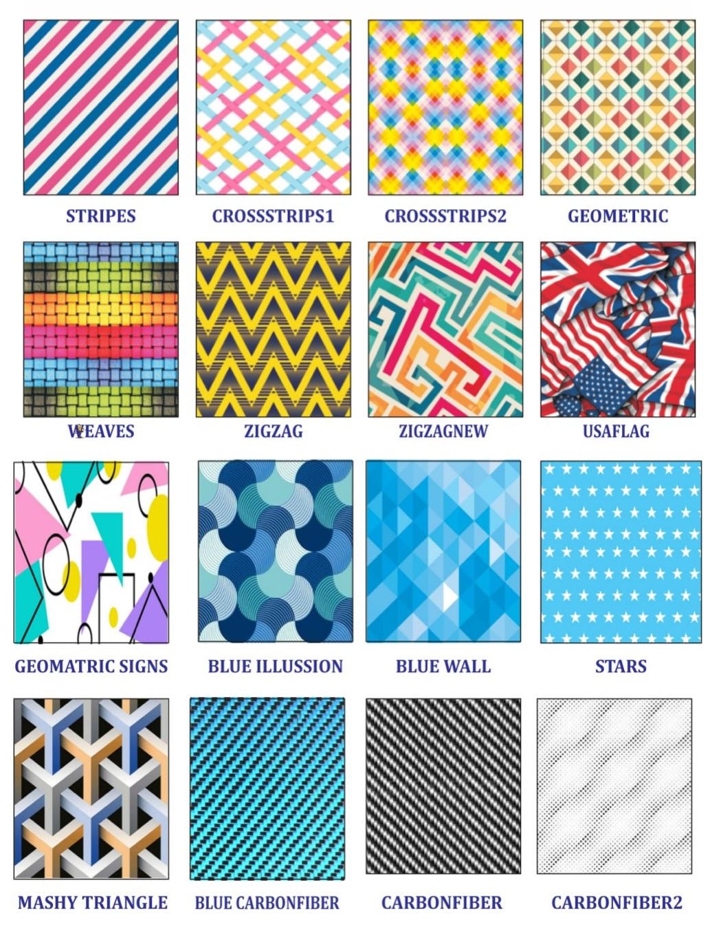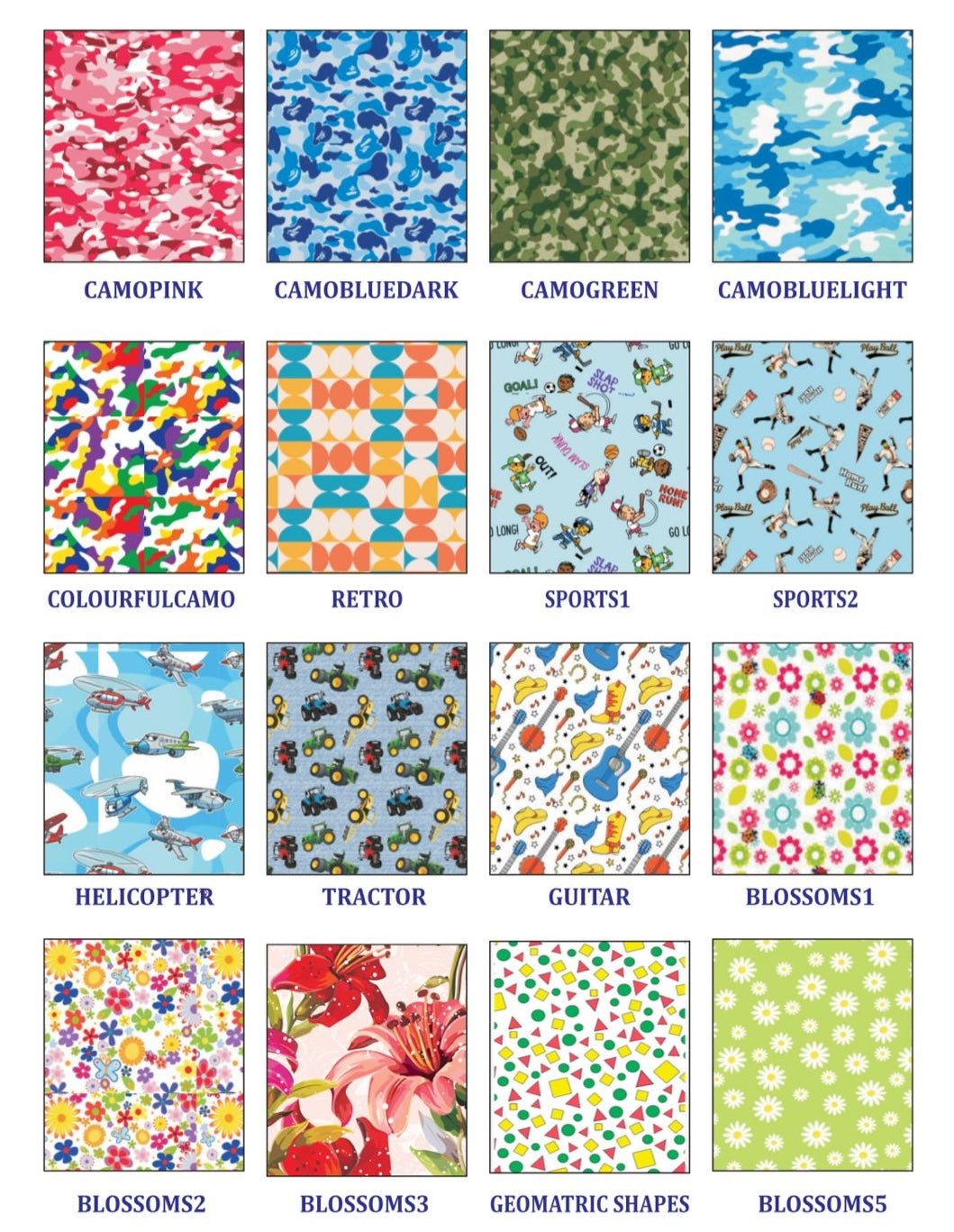 Custom patterns available on request