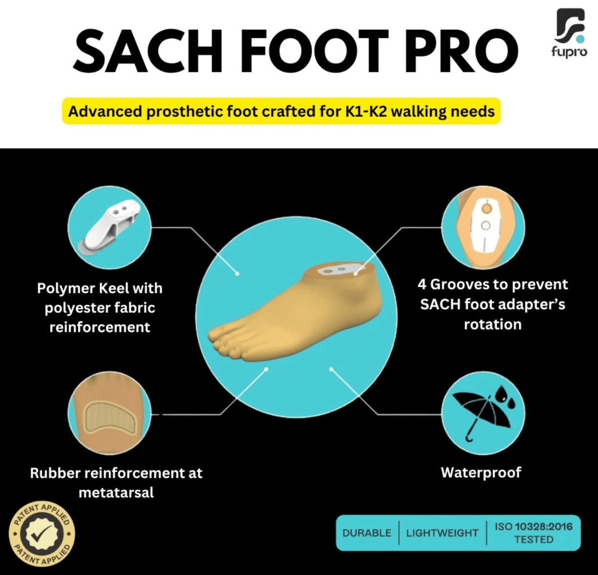 Designed to handle real-life wear with ease, the Fupro SACH Foot Pro combines proven structure with modern enhancements. From reinforced performance to waterproof reliability, it’s a practical solution that meets clinical needs and patient expectations — steady, strong, and ready for everyday use.