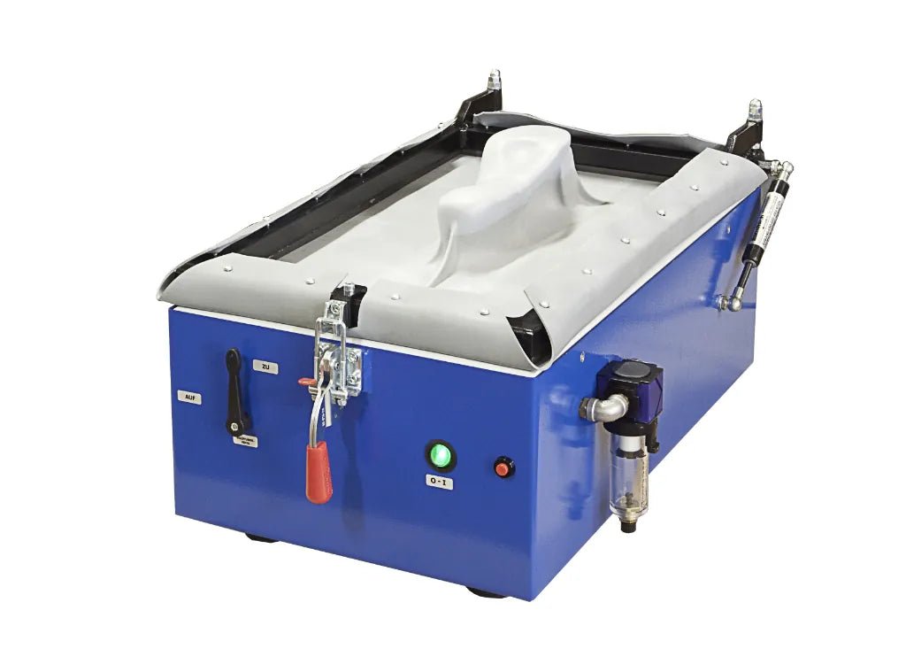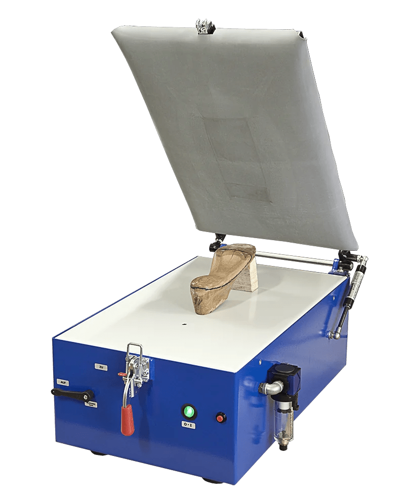 Optimized for orthopedic work: Both models feature a gas-shock–supported frame with adjustable frame tension and a soft bladder mat — ensuring secure clamping and even pressure during thermoforming, ideal for insoles, foot orthoses, and custom bases.